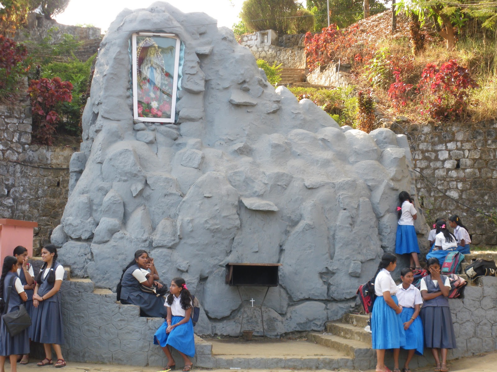 Começámos a descer a montanha rumo à costa, descidas largas, vegetação densa. Visita às cascatas de Jogg Falls, uma impressionante falésia onde outrora caía uma tão impressionante cortina de água. Nos últimos anos não tem chovido o suficiente para encher as cascatas e os olhos dos turistas. Mas a escarpa de pedra está lá, altíssima e vertiginosa. É um ponto de turismo, tem um pequeno aglomerado de casas em U, parecem as lojas de Fátima. Mas aqui não se vendem recordações, as lojas são pequenos restaurantes, de tachos em metal reluzente, um pequeno fogão de campismo, duas mesas de plástico com cadeiras, um frigorífico com 50 anos. As mulheres chamam-nos, dizem-nos o que podem cozinhar. Omeleta de pão, arroz frito com legumes, massa com legumes, banana em massa de ovo e farinha. Está calor, muito calor, o ar é húmido, uma vaca passeia-se no terreiro à frente dos pequenos restaurantes.